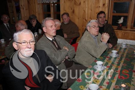 Tekin í hófi sem Félag bjargveiðimanna hélt Óskari Sigurðssyni, vitaverði á 70 ára afmæli hans.