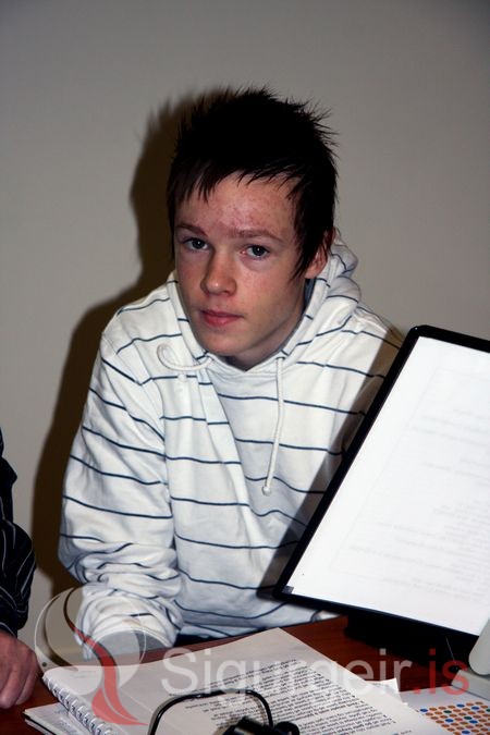Fáfnir Hafþórsson, nemi í Barnaskóla Vestmannaeyja í starfskynningu á Fasteignasölunni-þjónustuverinu Heimaey.