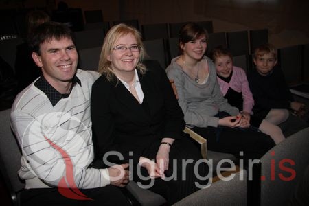 Hjónin Guðni Hjálmarsson, Guðbjörg Guðjónsdóttir og börnin þeirra Jenný, nafn vantar og Hjálmar.