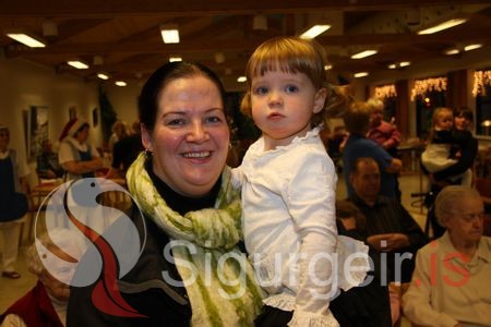 Jólaball leikskólans Kirkjugerði haldið á Hraunbúðum. Arndís María Kjartansdóttir með dóttur sína Bertu Ómarsdóttur.