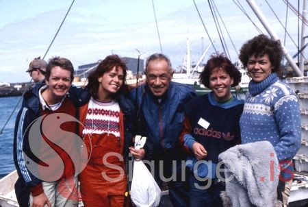 Sjóstangaveiðimót í Vestmannaeyjum. Helga Tómasdóttir, Jóhanna Jóhannsdóttir, Hannes Tómasson frá Höfn, Alda Harðardóttir og Aðalbjörg Bernódusdóttir frá Borgarhól.