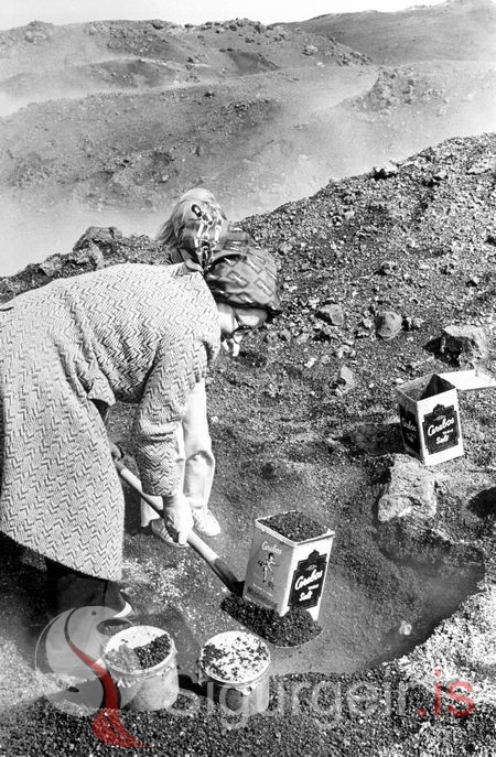 Halldóra Úlfarsdóttir við brauðbakstur í nýja hrauninu.