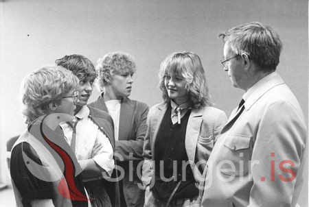 Eiríkur Guðnason, skólastjóri Barnaskóla Vestmannaeyja ásamt kennurum úr Hamarsskólanum. Kristín Arnardóttir, Svava Bogadóttir, Ólöf Aðalheiður Elíasdóttir, Ingveldur Gyða Ólafsdóttir.