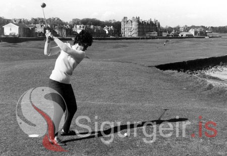 Jakobína Guðlaugsdóttir spilar golf í Skotlandi.