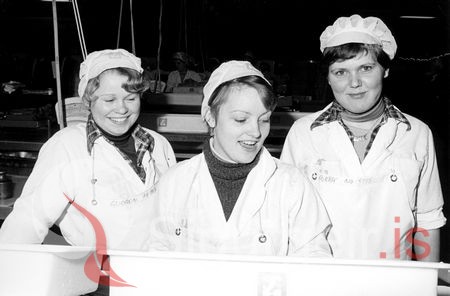 Tekin í Vinnslustöð Vestmannaeyja 17. mars 1980. Nöfnin vantar.