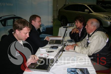 Tekin á bílasýningu Toyota í Vestmannaeyjum í apríl 2006. Hér eru Kristján Óskarsson og Emma Pálsdóttir að ræða við sölumenn Toyota.