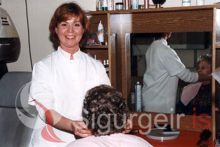 Tekin á hárgreiðslustofunni á Hraunbúðum.