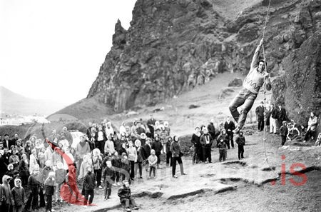Svavar Steingrímsson sýnir sprang í Skiphellum.