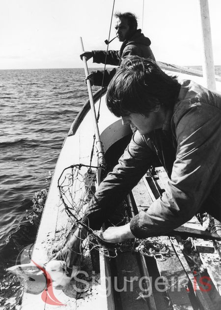 Ragnar Runólfsson í Bræðratungu hefur háfað einn, Gylfi Ingólfsson greiðir úr.
