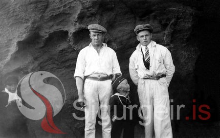 Komið úr bjargsigi, bræðurnir Jónas og Ólafur Sigurðssynir frá Skuld.