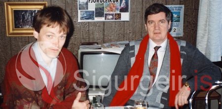 Helgi Ólafsson, skákmeistari og Andri Valur Hrólfsson.