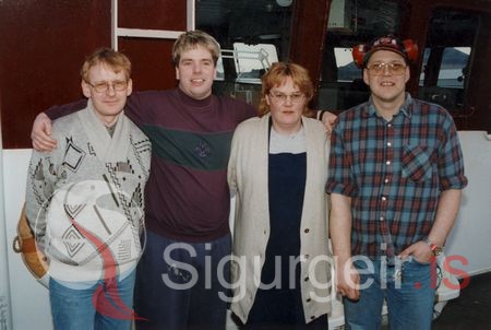 Hluti áhafnarinnar á Bylgu Ve. Björn (föðurnafn vantar), vélstjóri, Sigurður Óli Bragason, vélstjóri, Rannveig Hreinsdóttir, matsveinn og Einar Axel Gíslason, vélstjóri.