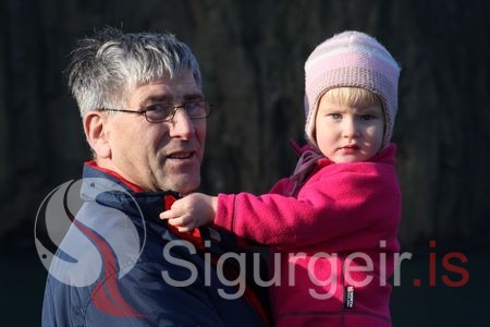 Arnór Páll Valdimarsson með barnabarn sitt Helgu Sigrúnu Svansdóttur.