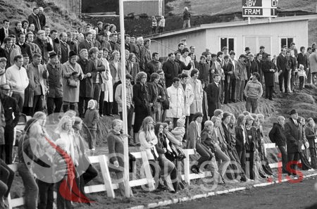 ÍBV að keppa við Fram, margir mættir á völlinn að hvetja sína menn.