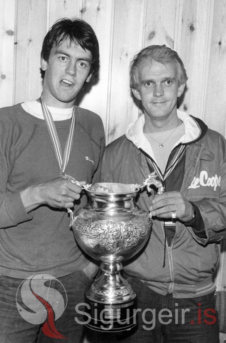 Sigurlás Þorleifsson, fyrirliði knattspyrnuliðs ÍBV og þjálfarinn Kjartan Másson.