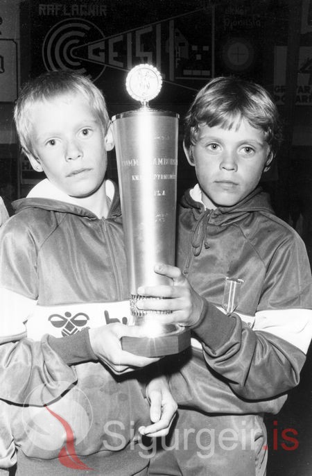 Gaman að eiga þátt í að vinna svona glæsilegan grip fyrir félagið sitt. Bræðurnir Hjalti og Hlynur Jóhannessynir.