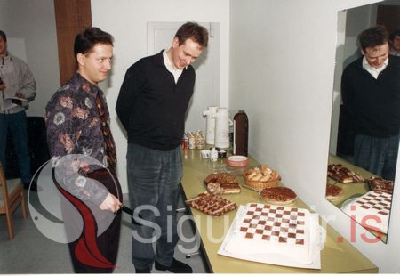 Sigurjón Þorkelsson, leigubílstjóri og Jóhann Hjartarson, skákmeistari.