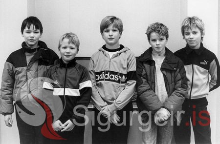 Ungir skákmenn, annar frá vinstri er Birgir Hrafn Hafsteinsson og annar til hægri er Óskar Ragnarsson, Jón Egilsson,