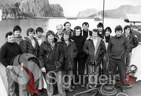 Áhöfnin á Gullbergi VE-292. Varnek Nikulásson, Kristján Sigmundsson, Hreinn Gunnarsson, Ólafur Sigmundsson, Óskar M. Ólafsson, Gunnar Haraldsson, Sveinbjörn Jónsson, Vigfús Guðlaugsson, Eyjólfur Guðjónsson, Ólafur færeyingur, Gunnar Sveinbjörnsson, Samúel Friðriksson, Hlöðver Haraldsson, Guðjón Pálsson, skipstjóri, Bernódus Alfreðsson.
