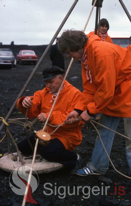 Tekin í Vestmannaeyjum 1. júlí 1978 á æfingu Hjálparsveitar skáta og Björgunarfélagsins með nýjan björgunarbúnað.