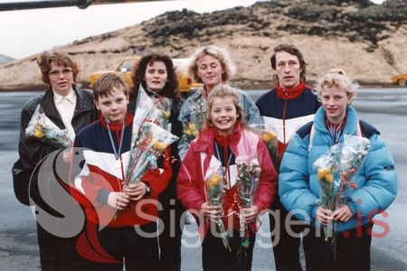 Ungmennafélagið Óðinn. Aftari röð: Sigrún Þorláksdóttir Sólveig Anna Gunnarsdóttir, Árný Heiðarsdóttir, nafn vantar. Fremri röð: Bjarnólfur Lárusson, Karen Ólafsdóttir og Elísa Sigurðardóttir.