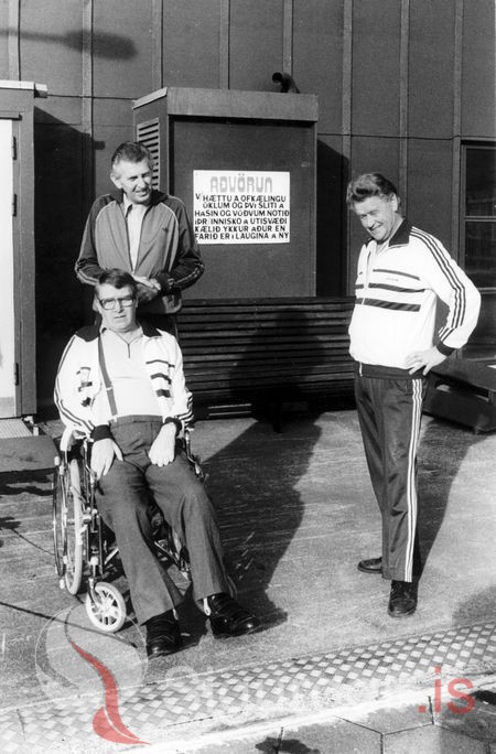Tekin í október 1985 við íþróttamiðstöðina í Vestmannaeyjum.