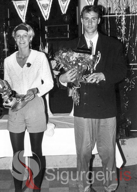 Verðlaunaafhending hjá ÍBV. Íris Sæmundsdóttir og Erlingur Richardsson.