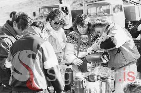 Stelpurnar í kvennahandboltanum sjá um að selja kaffi á fótboltaleikjum. Ragna Birgisdóttir og Ásta Kristjánsdóttir.