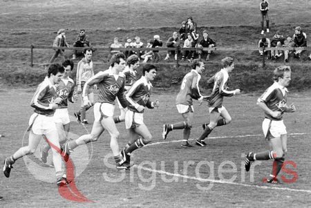 Hlaupið í vörn, eftir gott mark, leikmenn ÍBV, Ómar Jóhannsson, Sigurlás Þorleifsson, Valþór Sigþórsson, Kári Þorleifsson, Snorri Rútsson, Jóhann Georgsson og Viðar Elíasson.
