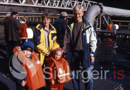 Á leið út í Klettsvík að skoða Keikó, Bjarki Brynjarsson, framkvæmdastjóri Þróunarfélags Vestmannaeyja og fjölskylda.