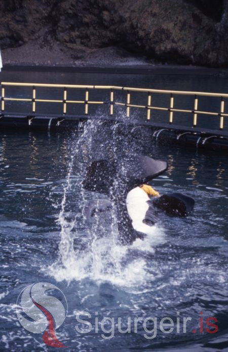 Tekin 12. september 1998 úti í kvínni í Klettsvík í Vestmannaeyjum.