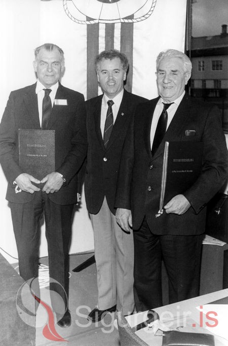 Kristinn Sigurðsson á Skjaldbreið, slökkviliðsstjóri, Henry Hálfdánarson frá Slysavarnafélagi Íslands og Einar Sveinn Jóhannesson, skipstjóri á Lóðsinum.