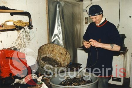 Pétur Árnmarsson í beitningu.