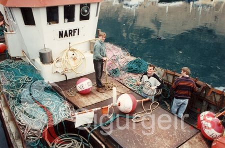 Narfi að taka upp. Sigurbjörn Viðarsson, Jón Berg Sigurðsson og Sigurður Franz Þráinsson.