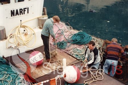 Um borð í Narfa Ve., Sigurbjörn Viðarsson, Jón Berg Sigurðsson og Sigurður Franz Þráinsson.