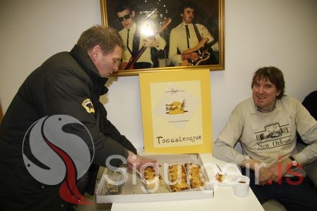Róbert Sigurmundsson og Viðar Einarsson fá sér af "Toggalengjunum".