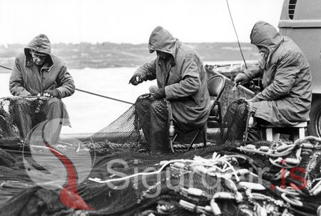 Netamenn frá Net h/f, Bjarni (föðurnafn vantar), Júlíus Hallgrímsson og Sigfús Sveinsson.