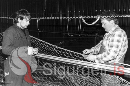Bjarki Kristjánsson og Alexander Matthíasson við netavinnu.