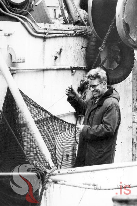 Finnbogi Ólafsson, netagerðarmeistari í netavinnu um borð í loðnubát.
