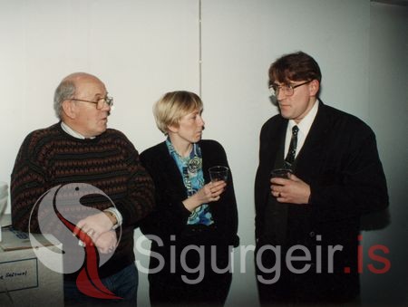 Feðginin Magnús Magnússon og Elín Helga Magnúsdóttir á léttu spjalli við Óskar Arason.