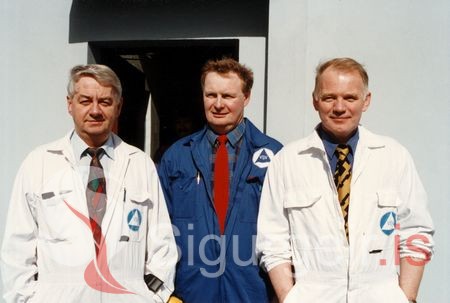 Ágúst Þórarinsson frá Mjölni, Óskar Valtýsson og Bryngeir Sigfússon, starfsmenn Fiskimjölsverksmiðju Vestmannaeyja.