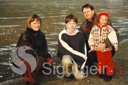 Fjölskyldan á göngu í Herjólfsdal, Ásta Garðarsdóttir, Björn Ívar Karlsson, Karl Björnsson, læknir og Berglind Karlsdóttir.
