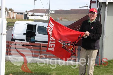 Manchester United Englandsmeistarar, Egill Egilsson flaggar í tilefni dagsins.