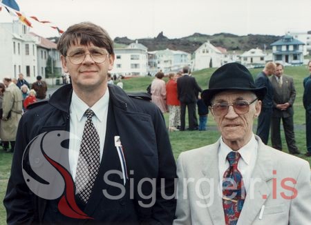 Feðgarnir mættir niður á Stakkagerðistún á sjómannadaginn. Sigmar Sveinbjörnsson og Sveinbjörn Snæbjörnsson.