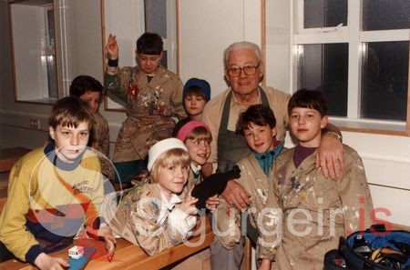 Sveinn Magnússon, smíðakennari ásamt nemendum sínum í Barnaskóla Vestmannaeyja.