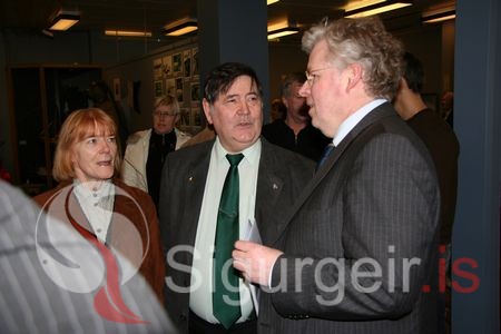 Hjónin Ingigerður Eymundsdóttir, hjúkrunarfræðingur og Þórður Rafn Sigurðsson, skipstjóri og útgerðarmaður ásamt Einari K. Guðfinnssyni, sjávarútvegsráðherra.