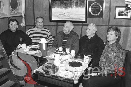 Tekin um borð í Lóðsinum. Óli Sveinn Bernharðsson, Ágúst Bergsson, Ingólfur Matthíasson, Einar Sveinn Jóhannesson og Guðjón Hjörleifsson