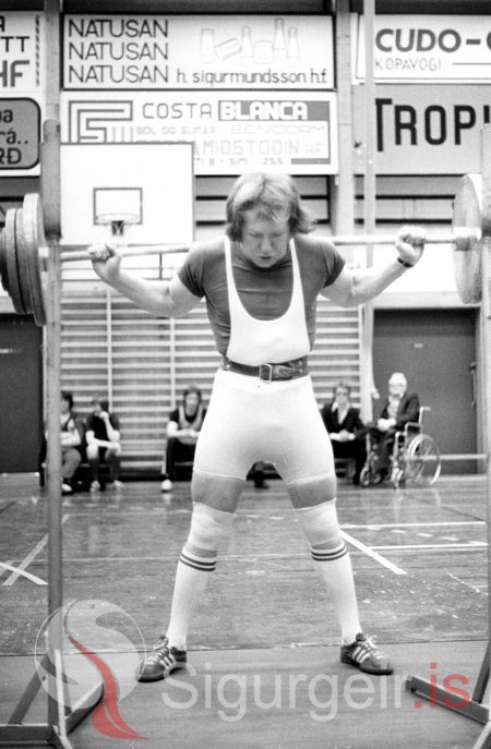 Hér tekur Gunnar Steingrímsson á því, myndin er tekin í kraftlyftingakeppni í Vestmannaeyjum 3. febrúar 1979.