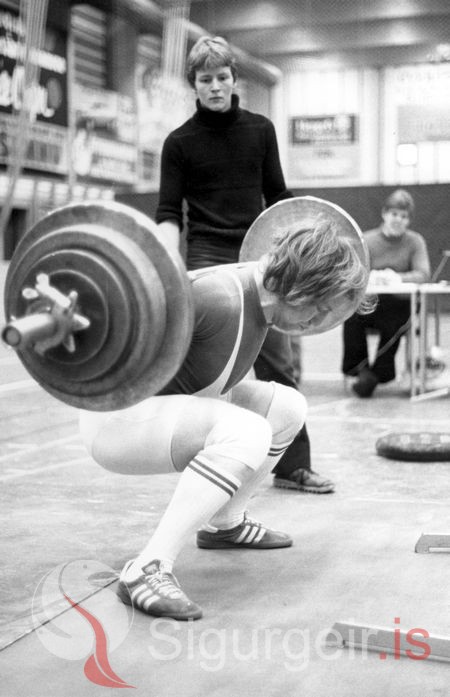 Gunnar Steingrímsson að lyfta og á bak við hann stendur Gylfi Guðlaugsson. Myndin er tekin 3. febrúar 1979.