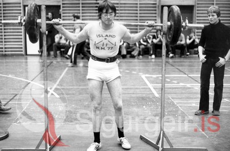 Stefán Pétur Bjarnason að lyfta og Gylfi Guðlaugsson stendur og fylgist með. Myndin er tekin 3. febrúar 1979.
